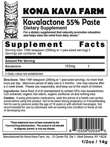 -. Title : KONA KAVA Kavalactone 55% Premium Kava Paste for Muscle Relaxation, Sleep Aid, and Stress Relief (1/2oz)