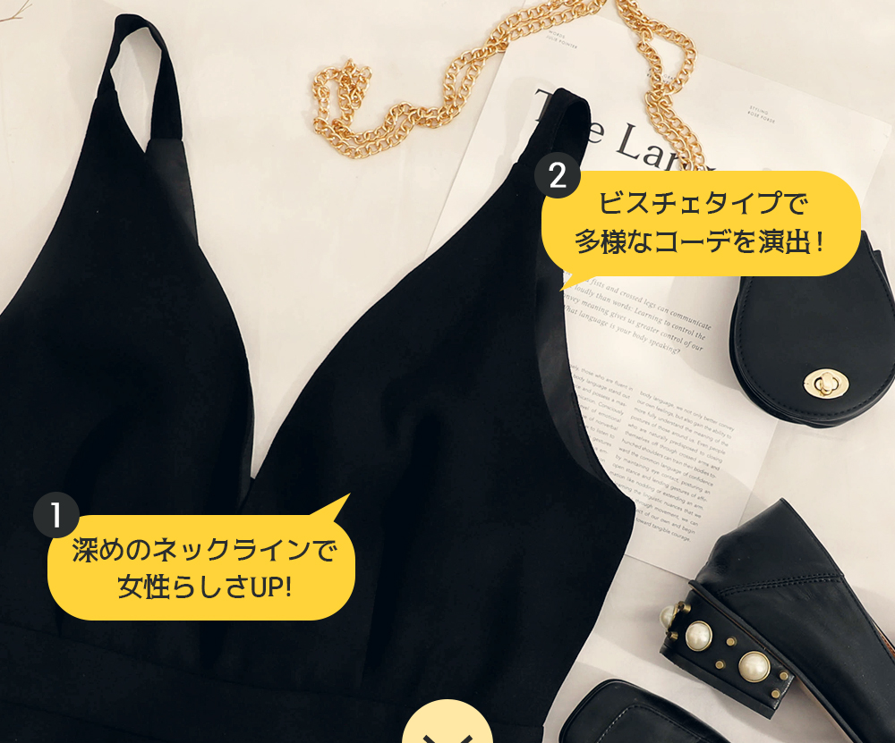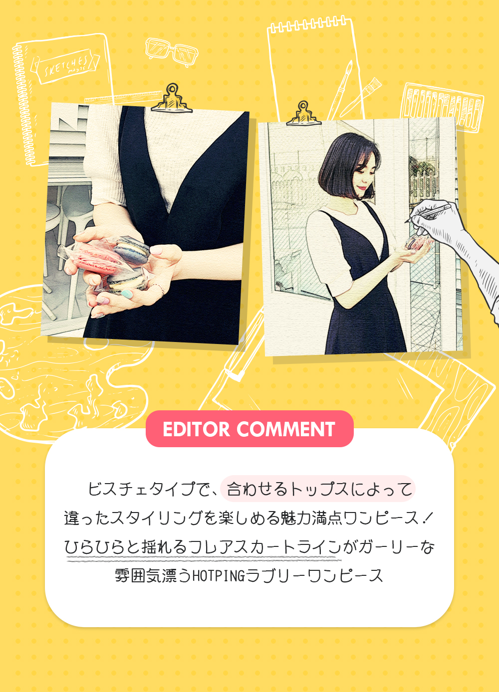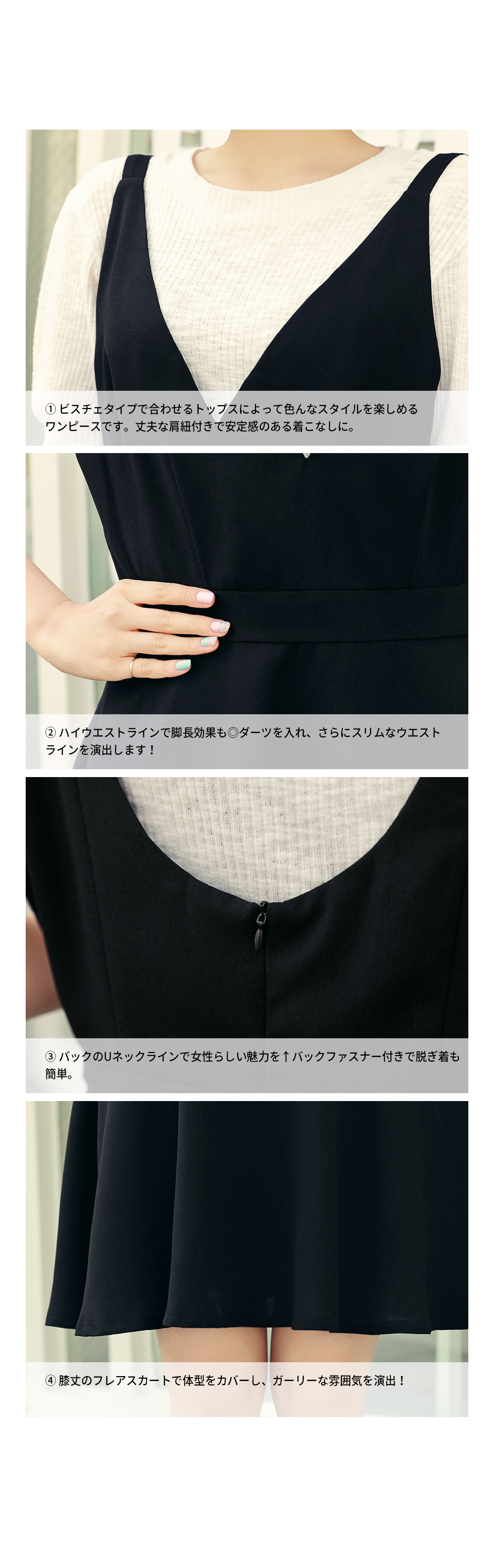 ビスチェタイプのワンピースで合わせるトップスによって色んなスタイリングを楽しめます。フレアに広がるスカートで体型カバーはもちろん、華奢見えも叶えます♡高めのウエストラインで脚長効果も◎ブラックカラーでアイテムを選ばず活用度無限大!お呼ばれやデート、フォーマルなシーンにも活躍するワンピースです。