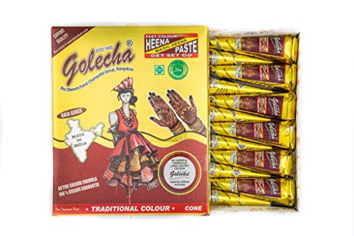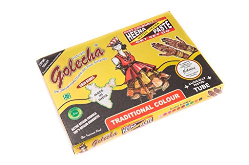- Feature : natural black henna hair color is herbal-based hair color product / contains natural henna, which gives a natural black color for longer period, along with smooth silky & strong hair. / This is free from damaging chemicals like ammonia and others, which are known to be added in certain hair dyes / Nisha Henna Hair Color assist hair retain moisture and protein, as it is without ammonia. / 6 X golecha instant mehandi tattoo cone