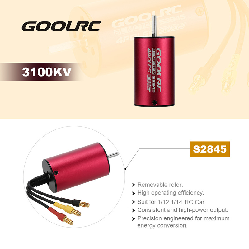 The set includes a S2845 3100KV motor and a 35A ESC, which is perfectly fit for the 1/12 1/14 RC car. This motor is built from the best materials available, and is designed to provide both quality and performance at an affordable price. And it's with high quality aluminum alloy parts that are produced on the latest CNC milling machines. Additionally, the ESC features enhanced throttle response,excellent acceleration, strong breaks and throttle linearity.
