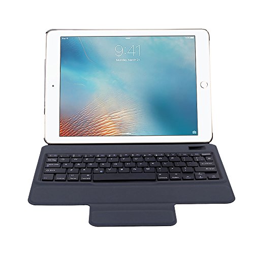 -. Feature : Slim Design: The slim keyboard case designed for Apple iPad Pro 9.7 tablet 2016 Edition, Its ultrathin design is easy to carry when you're on the go; High quality PU leather cover and soft, microfiber-lined interior provide full protection for your tablet, With Auto Wake/Sleep Function / 3-In-1 Functionality: Bluetooth V3.0 keyboard + Stand + Premium Carrying Case,it is extremely convenient to carry your tablet to office and travel; Lasting: A powerful lithium polymer battery provides up to two years of regular use between charges / PROTECTIVE CASE: The leather iPad Pro (9.7") case with keyboard is made out of premium synthetic leather that provides maximum protection. This premium vegan leather case is compact, snug, lightweight and protective / Convenient: Laptop style keyboard with ABS keys, convenient for working and entertainment,giving you better typing experience than silicone keyboard as other cases / Multi-Angled :Adjustable stand securely holds your tablet in landscape mode and at virtually any viewing angle, just like a laptop