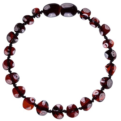 Baltic Amber Teething Bracelet or Anklet for Babies, Toddlers, and Kids - Lab-Tested - Baroque Polished Cherry - 5.5 Inches