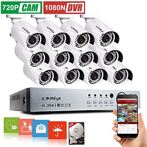 -. Title : KAREye 16 Channel 1080N AHD DVR Surveillance System with 720P 12 Bullet security cameras for Outdoor Indoor 100ft Night Vision with 2TB Hard Drive,White