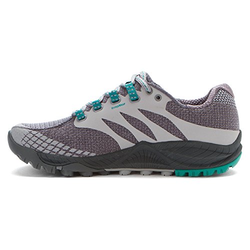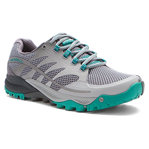 Merrell Women's All Out Charge Trail Running Shoe,Light Grey/Dynasty Green,5.5 M US