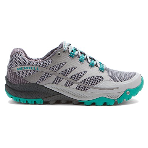 Merrell Women's All Out Charge Trail Running Shoe,Light Grey/Dynasty Green,9 M US