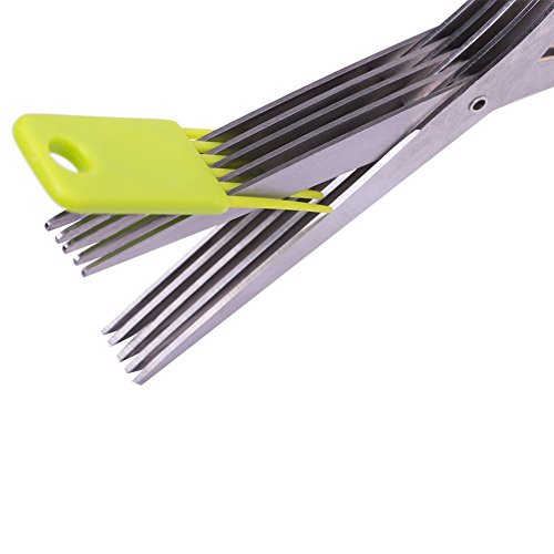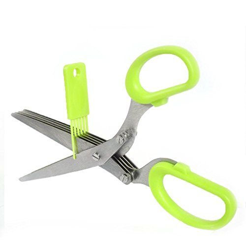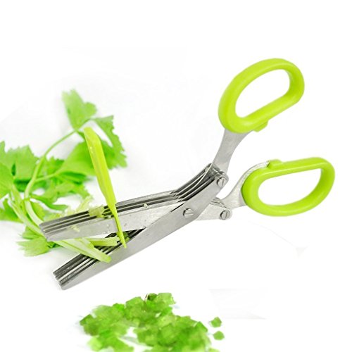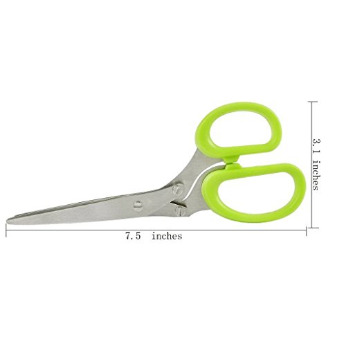 HERB SCISSORS WITH 5 SHARP BLADES STAINLESS STEEL MULTIPURPOSE KITCHEN SHEAR FOR CUT AND CHOP HERBS OR VEGETABLES FAST - GREEN