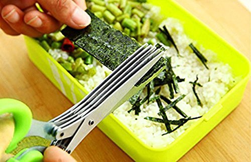• Not only can you slice herbs, you can also use this herb scissors to cut slices of ham, prawns, cheese, onions, mushrooms, pasta, peppers, chocolate, potato chips, etc..