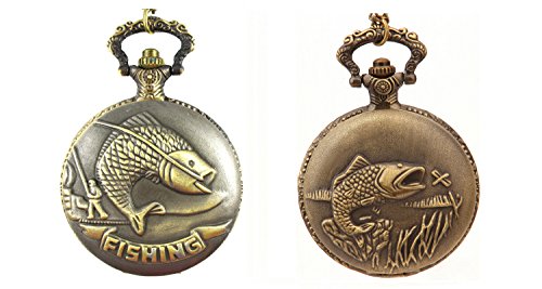 -. Title : YouYouPifa Classic Bronze Fishing Pattern Relief Big Pocket Watch
