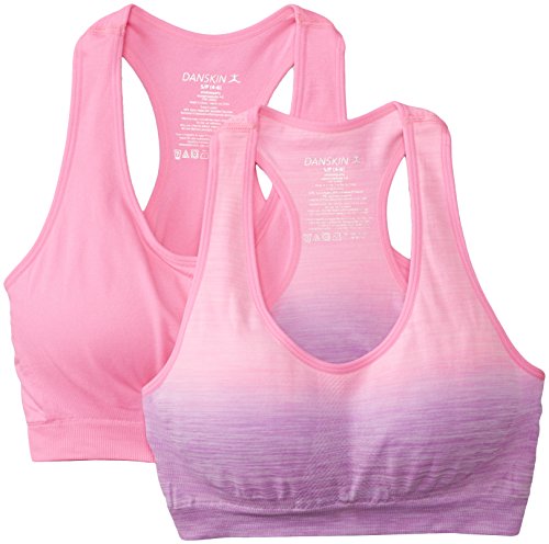 Two-pack seamless sport bra in moisture-wicking fabric featuring racerback