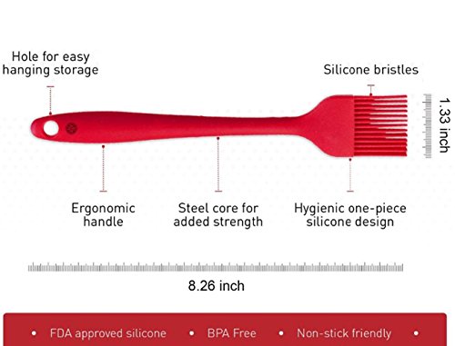 - No bristles on your food: Not like regular plastic or wooden brushes, the bristles will not break or shed in your food like old brushes; Silicone basting brushes has 4 rows of 13 bristles each for a total of 52 bristles, Multiple layers of silicone bristles hold the sauce or marinade wonderfully and applies it well
