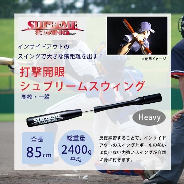 | 「シュプリームスウィング」は、インサイドアウトのスイングを体得するのに最適なトレーニング器具です。インパクトでは快音とともに瞬間的な負荷が最大になり、支点移動に伴う強く鋭い身体の回転でバットは大きな軌道を描きます。反復練習することで、インサイドアウトのスイングとボールの勢いに負けない力強いスイングが自然に身に付きます。 |