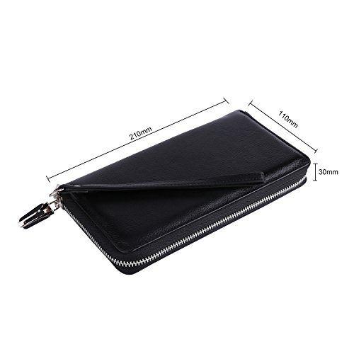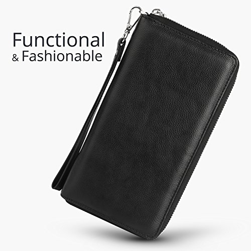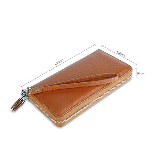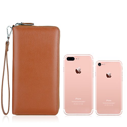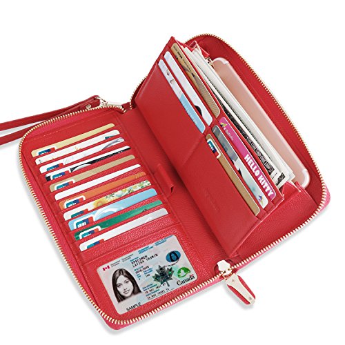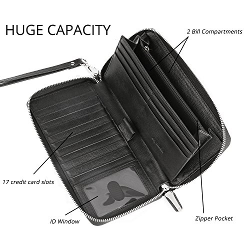 -. Feature : Top grain leather pebble leather, feels luxury and comfortable. / SAFETY & P.R.IVACY - Our wallets are equipped with advanced unique proP.R.Ietary blocking material, which blocks RFID signals and protects the valuable P.R.Ivate information stored on RFID chips from unauthorized scans. Tested & Approved by Independent Test Lab.Tested from 10MHz to 3000MHz, including 13.56 MHz in which the credit cards operate. / PRACTICAL - It's very nice, and allows you to easily carry it. Great wallet with a wristlet strap, fit iPhone 6 Plus or iphone 7 in here comfortably with all of your cards. You can use it all the time it's so easy to carry around. Large wallet for women, stylish design and huge capacity. Very practical worth having. / TRAVEL WALLET - RFID wallets for women, genuine leather and RFID blocking material.1 zipper pocket for change and coin,1 ID window with central cut out over,17 credit card slots, 2 currency pockets, one pen loop, this wallet is suitable for cash, coins, cell phone like as iphone7 plus, passport, pen, checkbook and removable wrist strap. / GUARANTEED - We know you'll love our wallet as much as we do, if you're not 100% SATISFIED, let us know and we will make things right: full refund or a free replacement, whichever you would prefer.