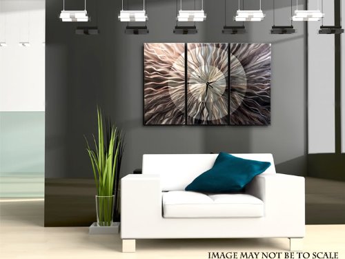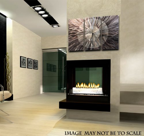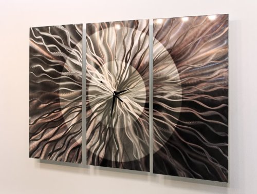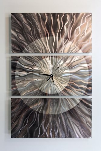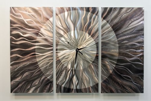- Title : Large Silver Metal Wall Art Clock - Three Pieces - Modern Contemporary Home Decor - Simple to Hang on Any Wall - Obsidian Burst By Jon Allen