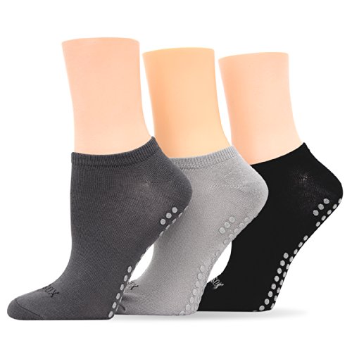 Look sophisticated and stylish in these non-slip yoga socks. 3 pairs per package. Imported.
