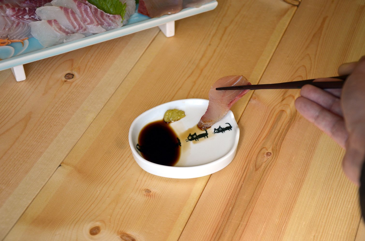 ● The soy sauce dish and the chopstick rest are united