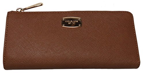 Michael Kors Jet Set Item Large Three Quarter Zip Leather Wallet Luggage
