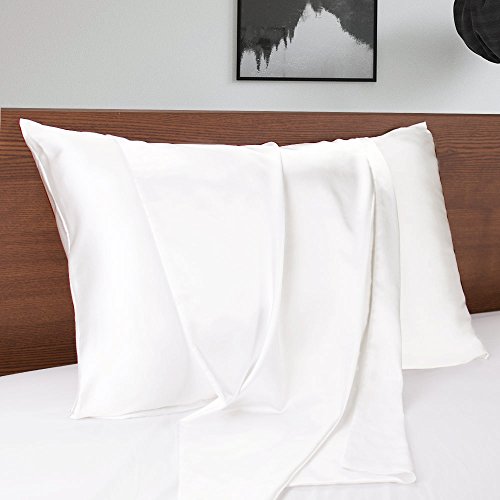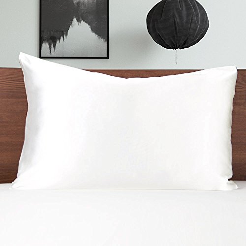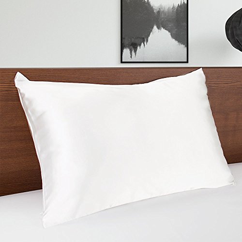 MOMMESILK Satin Pillowcase for Hair Beauty Faux Silk Pillowcase White with Hidden Zipper Sandard 1pc