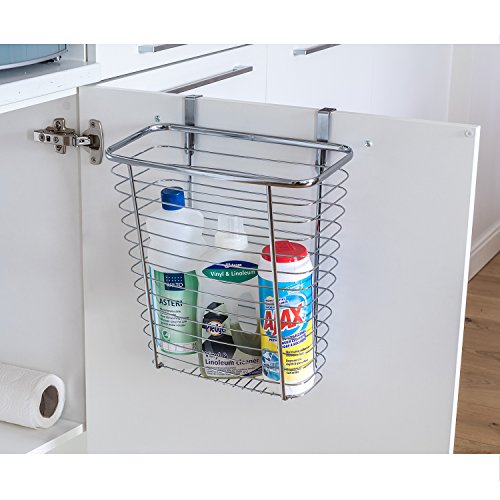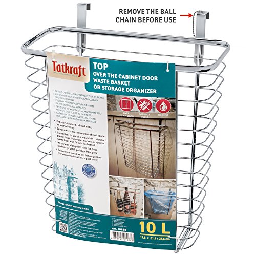 Studio : Tatkraft Publisher : Tatkraft Binding : Kitchen Product Description Over the cabinet door waste basket or storage organizer, 10 L capacity. Nothing to install, no tools or drilling. Maximize bottom cabinet space. Versatile usage: as a garbage bin or kitchen organizer (for wraps/ bottles/ juice packs etc.). Fits over standard 20mm (2cm; 0,78") cabinet door. Material: wire frame made of chrome plated steel 0