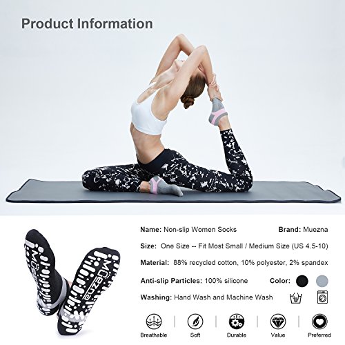 -. Title : Muezna Non Slip Yoga Socks for Women, Anti-Skid Pilates, Barre, Bikram Fitness Socks with Grips, Size 5-10