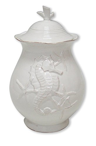 Blue Sky Ceramic Seahorse Canister, 6 x 6 x 9.5", White