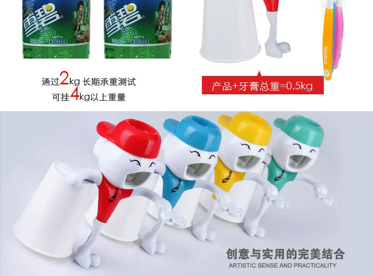 Ah Q Aberdeen comprehensive integration of the toothpaste dispenser, toothbrush holder Cups and appearance exaggerated comedy, overall adsorbed on the bathroom wall, so the bathroom countertops become clean and tidy.