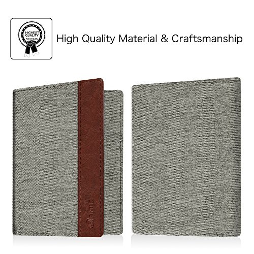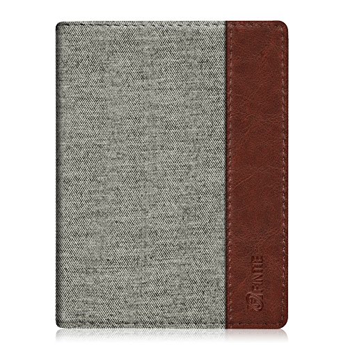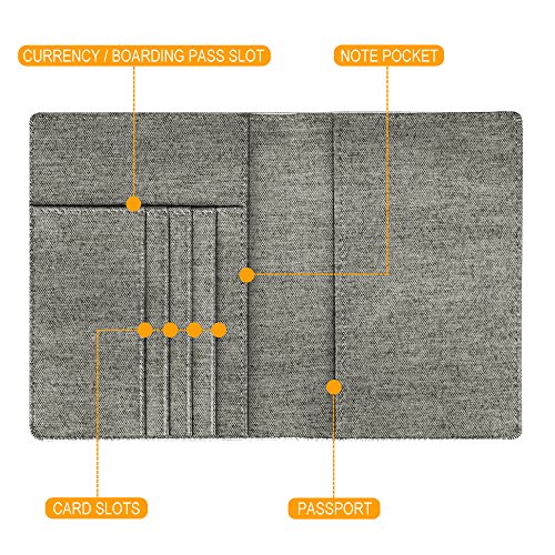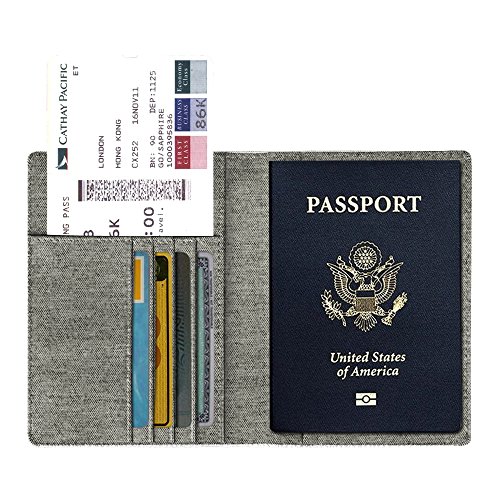 -. Title : Fintie Passport Holder Travel Wallet - Premium Vegan Leather RFID Blocking Case Cover - Securely Holds Passport, Business Cards, Credit Cards, Boarding Passes, Denim Grey