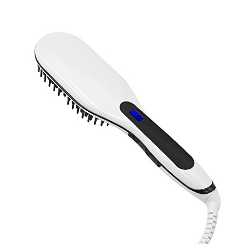 Mermaid Professional Hair Straightener Brush Portable Ceramic Hair Straightener-Digital LCD-Anti Static Anti Scald,Perfect for all hair types (white).