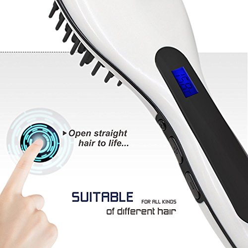 - Natural straight hair:This item is an electric hair straightener brush mainly of daily care, it will help you detangle your hair ,doesn't make your hair "stick straight",and no creases leave in hair ,give you a "fluency" and "light weight"natural straight hair.
