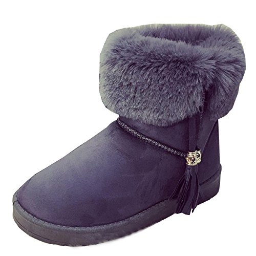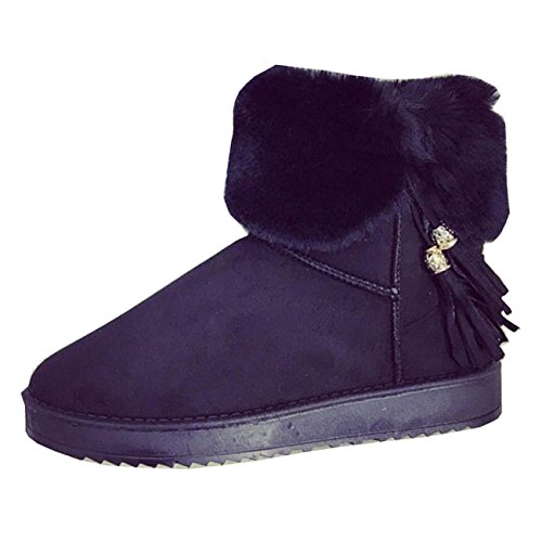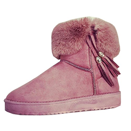(Mashiaoyi)/Women's/Boots/DIRECT FROM USA/Mashiaoyi Women's Flat Slip-On Tassel Fur Short Snow Boots