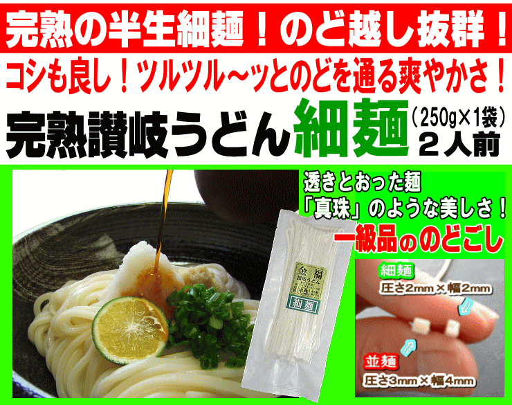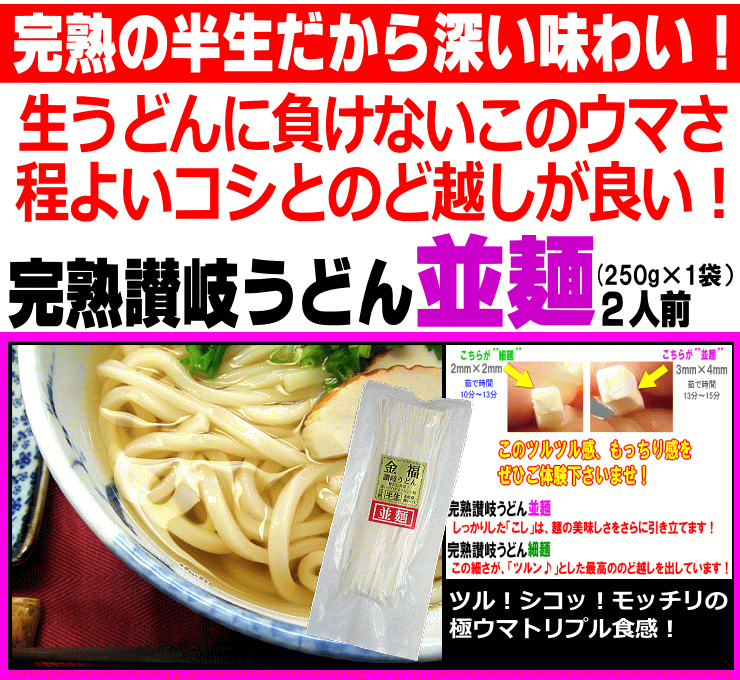 | 調理方法 | 多目のお湯でうどんを茹でた後、流水でもみ洗いをして表面のぬめり、塩分を 取り除き、器に盛ります。 |