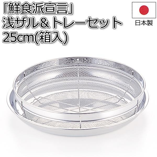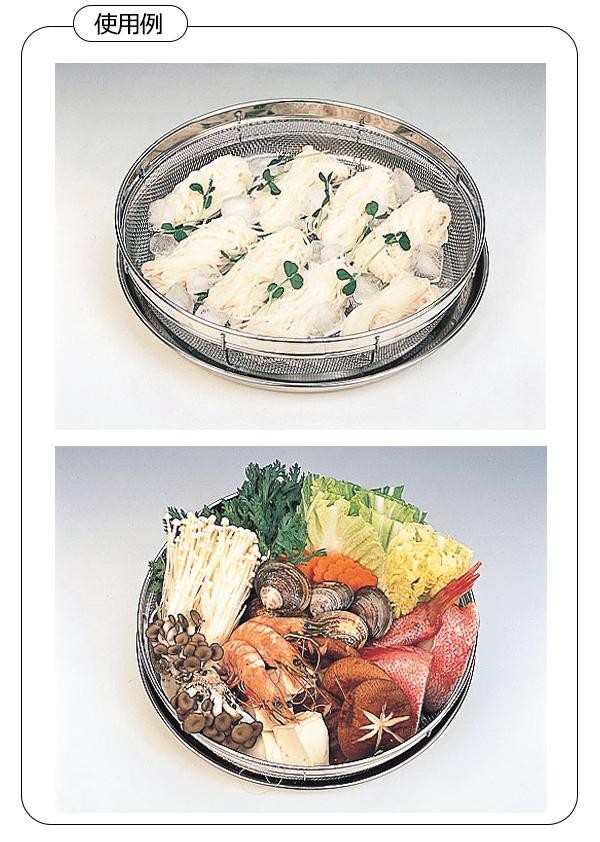 | 麺類や枝豆・鍋物等の材料を盛り付けてそのままテーブルへ出せる便利な浅ザルとトレーのセットです。清潔で美しいステンレス製でお手入れも簡単!! |