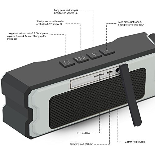-. Binding : Electronics -. Brand : Vist Fox -. Color : Gray -. EAN : 0664231452221 -. Feature : Amazing Clear Stereo Sound- Experience your music with full-bodied Hi-fi sound that is crystal clear and enhanced through dual high performance 10W(5Wx2) driver, along with built in microphone that allows you to answer calls without touching your phone (hands-free). / Bluetooth 4.2 technology- Equipped with advanced technology,Compatible with all Bluetooth compact devices, Speaker automatically Reconnects to the last device used. / Wireless Outdoor Speaker- Protected against low pressure water stream From any angle,water resistant,splash proof,rainproof,dust proof, and shockproof.Perfect for home,parties,school,Christmas gift,shower, beach,poolside,car,boat,golf cart,kayaking,travel,hiking,camping etc. (Waterproof rating IPX6 guarantees, but can't be partially or fully submerged). / Long playtime- High capacity rechargeable 4500MAH battery for up to 10 hours of playtime based on music volume. Enjoy a High Definition stereo sound with an impressive volume whether you're lounging around the house, partying,walking,camping,hiking or biking. / What You Get- Bluetooth Speaker,USB Cable,3.5mm Audio Cable, User Manual,Vist Fox 30 days money back guarantee, 18-month free warranty with friendly customer service. -. Label : Vist Fox -. Manufacturer : Vist Fox -. PackageQuantity : 1 -. ProductGroup : Speakers -. ProductTypeName : SPEAKERS -. Publisher : Vist Fox -. Studio : Vist Fox -. Title : Portable Bluetooth Speaker,Louder Volume 10W Power, Enhanced Bass, Built in Mic,IPX6 Water Resistant with TF Card Slot, Perfect Wireless Speaker for Home Travel Beach Shower (gray) -. UPC : 664231452221