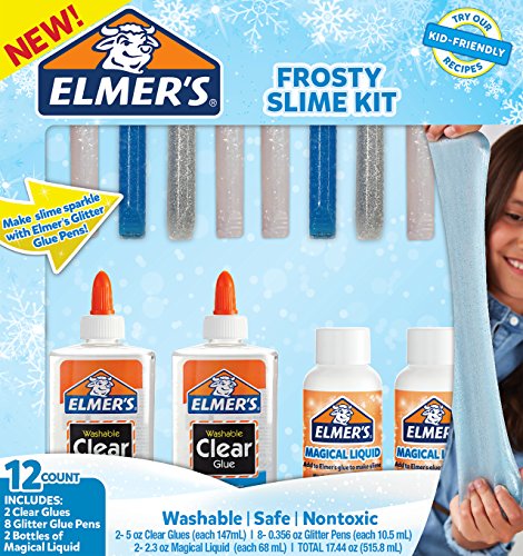 ‘Tis the season for sparkly slime, snowmen and festive crafting! washable, safe and nontoxic, elmer’s glue is the choice for endless, kid-friendly slime fun. Everything you need to make homemade slime, the elmer’s glue Frosty slime kit includes two bottles of elmer’s clear school glue, eight elmer’s glitter glue pens in Icy colors and two bottles of elmer’s magical liquid slime activator solution. The clear glue creates a transparent slime base while the Frosty glitter pens are perfect for customizing the glue slime with a pop of seasonal sparkle. You also receive two bottles of elmer’s magical liquid, our all-in-one formulation that transforms any elmer’s glue into perfectly goopy slime. Great for gatherings and in-class holiday activities, the elmer’s glue Frosty slime kit delivers hours of holiday fun for everyone.Feature