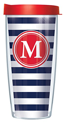 Stripes Navy Letter Initial "M" On Red Insignia 22 Oz Traveler Tumbler Mug with Lid