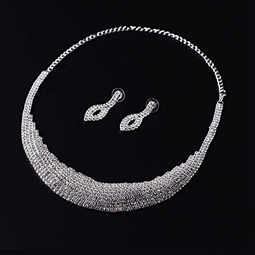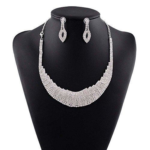 - Feature : Fashion and Romantic Jewelry Sets / Perfect for brides, With it, You will look more charming and attractive / Suitable for girls, perfect choice for your life, especially for party, wedding etc. / Stylish and classic appearance, fashion exquisite and elegant, it is soft and comfortable to wear, For making your dress up more elegant and fascinating / Material: Alloy and rhinestone,Quantity: 1set (Necklace 1 pc + Earrings 1 pair)