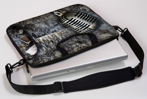 -. Feature : Fits most 17" laptops / Padded handles for easy carrying / Detachable shoulder strap / Zippered external pocket provides secure storage for power cords, USB and more without scratching your laptop / Thick, durable neoprene cushions your laptop for maximum moisture, shock and scratch protection / Strong yet light weight (wetsuit grade) neoprene / Rich, permanent, full color graphics / Machine Washable. Dry Flat.