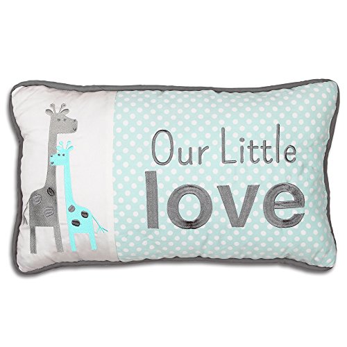Studio : Farallon Brands Publisher : Farallon Brands Binding : Baby Product Product Description Showcase your love for your little one with this sweet embroidered pillow from the Uptown Giraffe collection by The Peanutshell. A darling pair of giraffes smile from the front of this lumbar pillow, the 20" long x 12" wide size is perfect for a little back support or as a decorative accent. Contemporary in color and cute as can be, the giraffes are matched with a polka dot print front and back. The lettering and animals provide a rich texture with embroidered detail. A solid gray piping finishes the style. 0