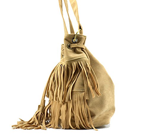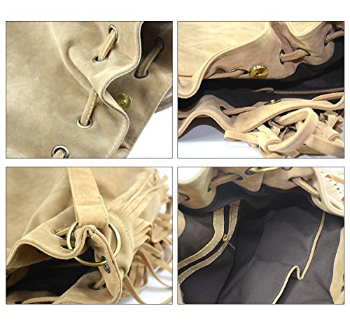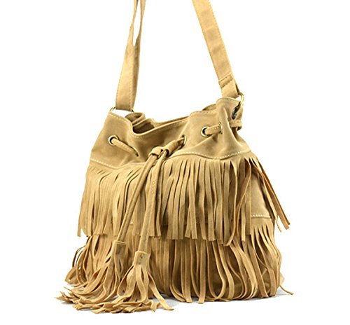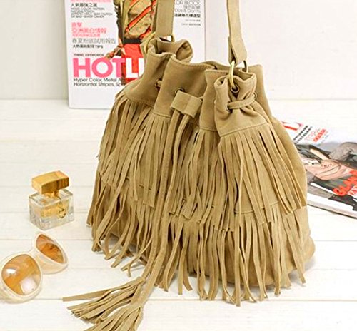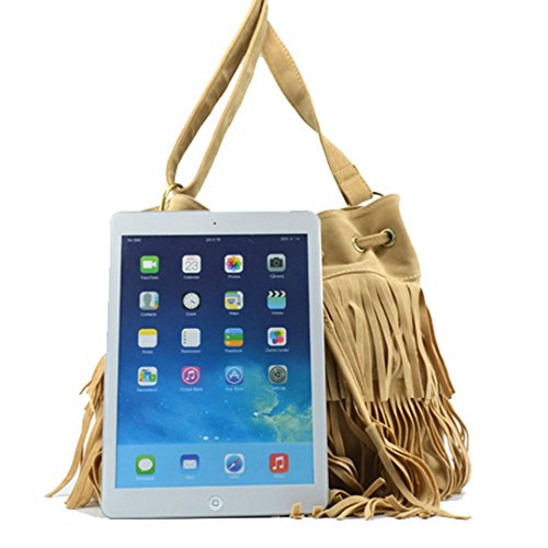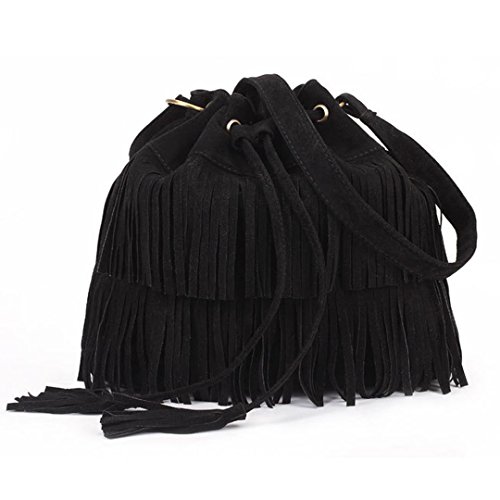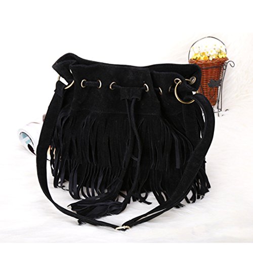 -. Feature : Women's Retro Vintage Fringe Tassel Bag Cross-body Handbag - Main Material: Faux Suede / Model 1:Drawstring and magnetic button to close & open, adjustable shoulder strap, 1 main inner pocket, 2 small pocket and 1 zipper pocket------Size: Model 1: 12.8*5.7*11 IN (L*W*H) / Model 2: Zipper Closure, adjustable strap, 1 main zipper pocket, 2 small pocket and 1 zipper pocket-----Model 2: L14.5 * H11 * W3.9 IN / Tassel design looks very fashion and beautiful. Ideal item for street shopping with friends / Package: 1 x crossbody bag/fringe bag/shoulder bag; Note: Real color may be slightly different because of brightness of display and light brightness.