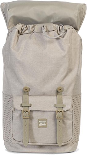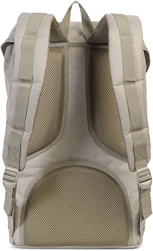 Herschel Little America Backpack in Dark Khaki Crosshatch an iconic Herschel Supply silhouette. Featuring signature striped fabric liner, air mesh back padding, and contoured shoulder straps.