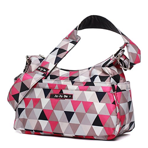 The Ju-Ju-Be HoboBe Purse Diaper Bag is chic, smart and functional with added innovation and versatility. Packs up great for baby, the HoboBe Diaper Bag looks like a fashionable purse but has all the same features as an ordinary diaper bag. When you're ready, take out the included memory foam changing pad for a full-fledged purse. How's that for flexible and fun? Be yourself and more with the HoboBe. The inner lining is protected with Agion natural antimicrobial treatment, which inhibits and reduces the growth of odor causing bacteria, mold and mildew. The outer fabric is treated with Teflon fabric protector so you can repel stains and keep your Hobo Be clean. The front "mommy" zippered pocket is large enough for smartphones, wallets, keys and other personal items. The main zipper pocket is large enough for diapers, wipes, soft toys and other items for quick trips. The back pocket is perfect for magazines or books. (2) bottle pockets are located on either side of the bag and insulated to keep your items hot or cold. The bag features Pinky Swear print and silver colored metal hardware. The adjustable memory foam shoulder strap has textured fabric underneath to prevent the bag from sliding off your shoulder. This bag is machine washable and measures 13.5" by 9.5" by 5.5" in size. The Ju-Ju-Be HoboBe Purse Diaper Bag comes with a 90day limited warranty that protects against manufacturing defects. Founded in 2005, Ju-Ju-Be is a Southern California company that fuses science, style, and attitude to create diaper bags, purses and other accessories that are both fashionable and fun. Ju-Ju-Be assimilated the most advanced technology possible to create a stylish and intelligent product line that's unrivaled in the industry.Feature