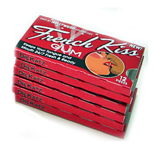 Studio : TheraBreath Publisher : TheraBreath Binding : Misc. Product Description French Kiss Chewing Gum 6 Pack Hollywood Favorite Keeps your mouth 24/7 Kissable 72 Pieces Total = Size - SIX Sheets of Gum - 12 pieces per sheet. Based on the strong TheraBreath PLUS Formula, this powerful gum obliterates odors instantly. Just chew a piece or two of this powerful gum before your next kiss and you'll be SURE that you're 'kissable'. This gum is used by Hollywood celebrities before they kiss on camera! XO XO 0
