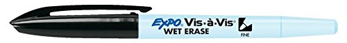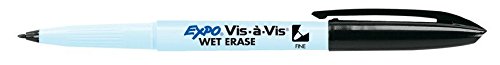 Expo Vis-A-Vis Wet-Erase Overhead Transparency Markers, Fine Point, Black, Dozen (SAN16001)