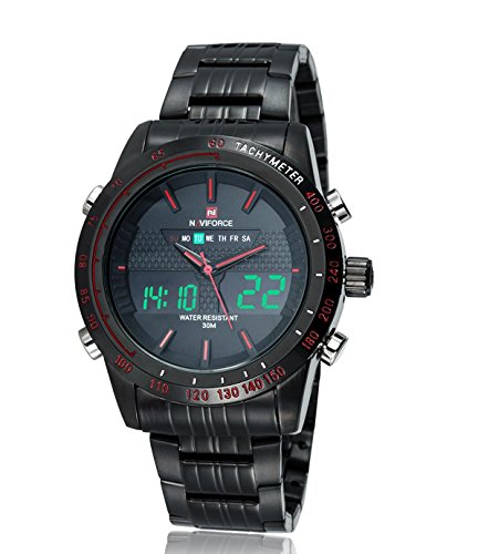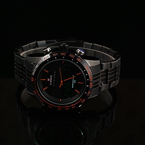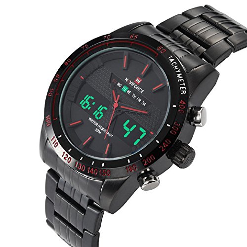 남성용 스포츠의 시계 군사 아날로그 스테인레스강 LED 듀얼 시간표시 시계 흑적