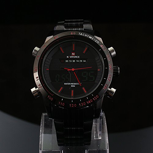 원본상품명: 男性用 スポ?ツの 時計 軍事 アナログ ステンレス鋼 LED デュアル 時間 表示 時計 ? 赤