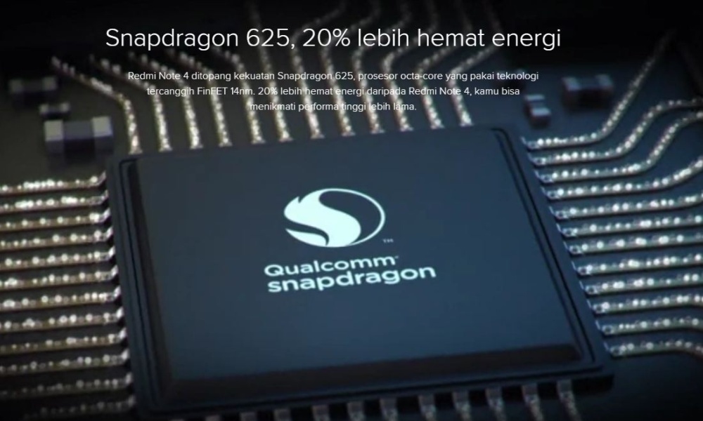 Snapdragon 625, 20% lebih hemat energi Redmi Note 4 ditopang kekuatan Snapdragon 625, prosesor octa-core yang pakai teknologi tercanggih FinFET 14nm. 20% lebih hemat energi daripada Redmi Note 4, kamu bisa menikmati performa tinggi lebih lama.