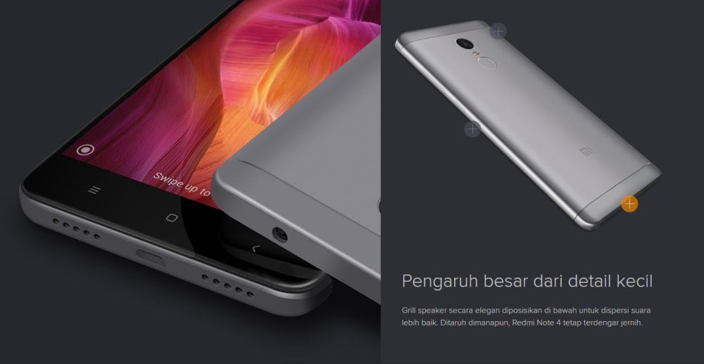 Pengaruh besar dari detail kecil Garis-garis separasi glossy terbuat dari anodised aluminium yang melalui proses finishing CNC memberikan sentuhan berkelas pada Redmi Note 4.