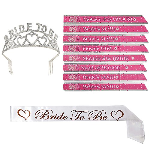 Bachelorette Bridal Party Sash bundle with Bride to Be Sash and Glitter Tiara (3 items)