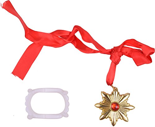 Durable and Suitable Size - The vampire fangs are durable and not easy to break. They fit the mouth perfectly. The gold medallion necklace is durable and has strong connection between the red satin ribbon and the medallion. We have one size fits most men and women. They are a great accessory for dressed up as a vampire for Halloween.