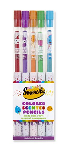 The Colored Smencils 5-Pack includes 5 of our gourmet colored pencils that are made from 100% recycled newspapers. Each Colored Smencil has a colored writing core and comes packaged in its own plastic freshness tube. You will receive 2each of the 5 scents.Feature