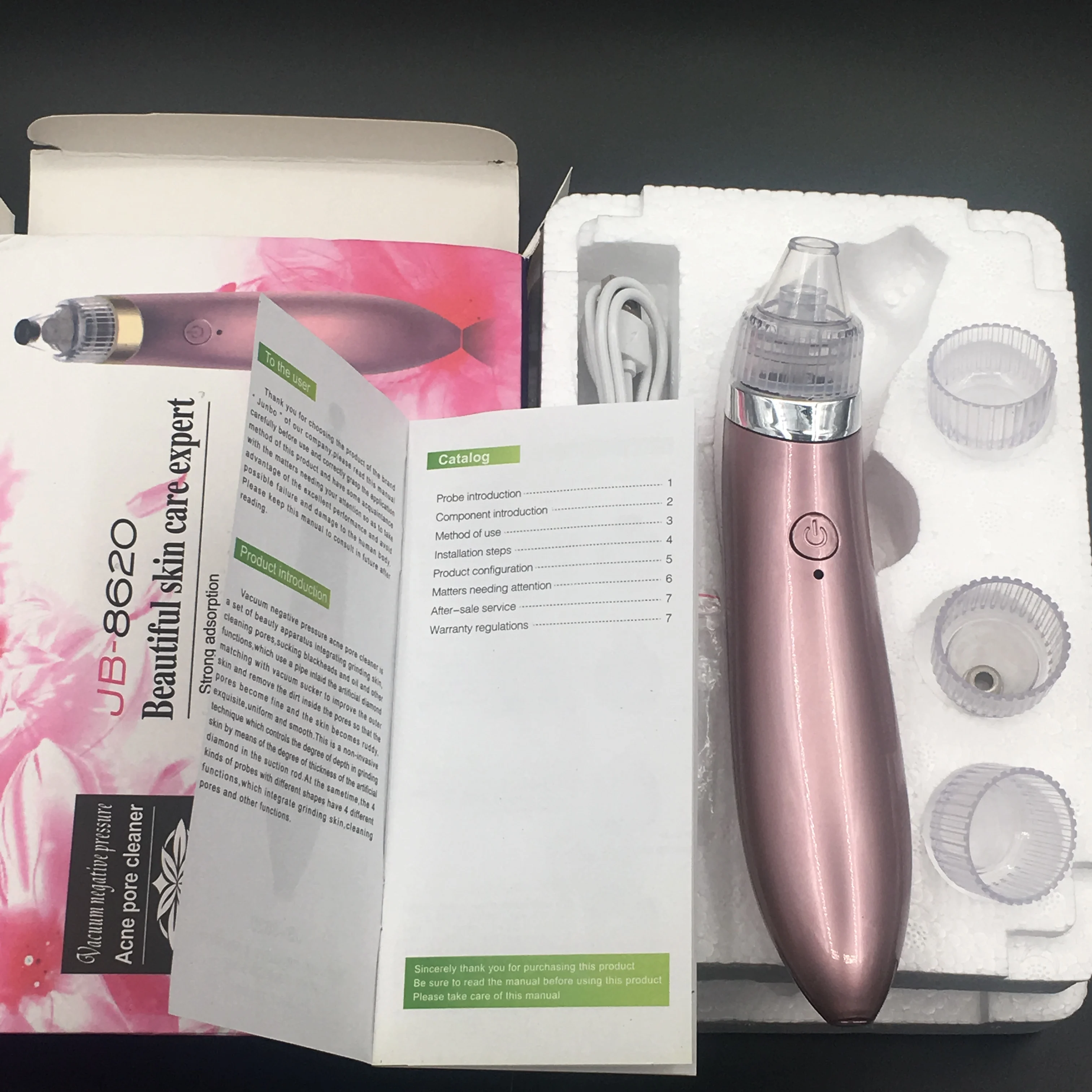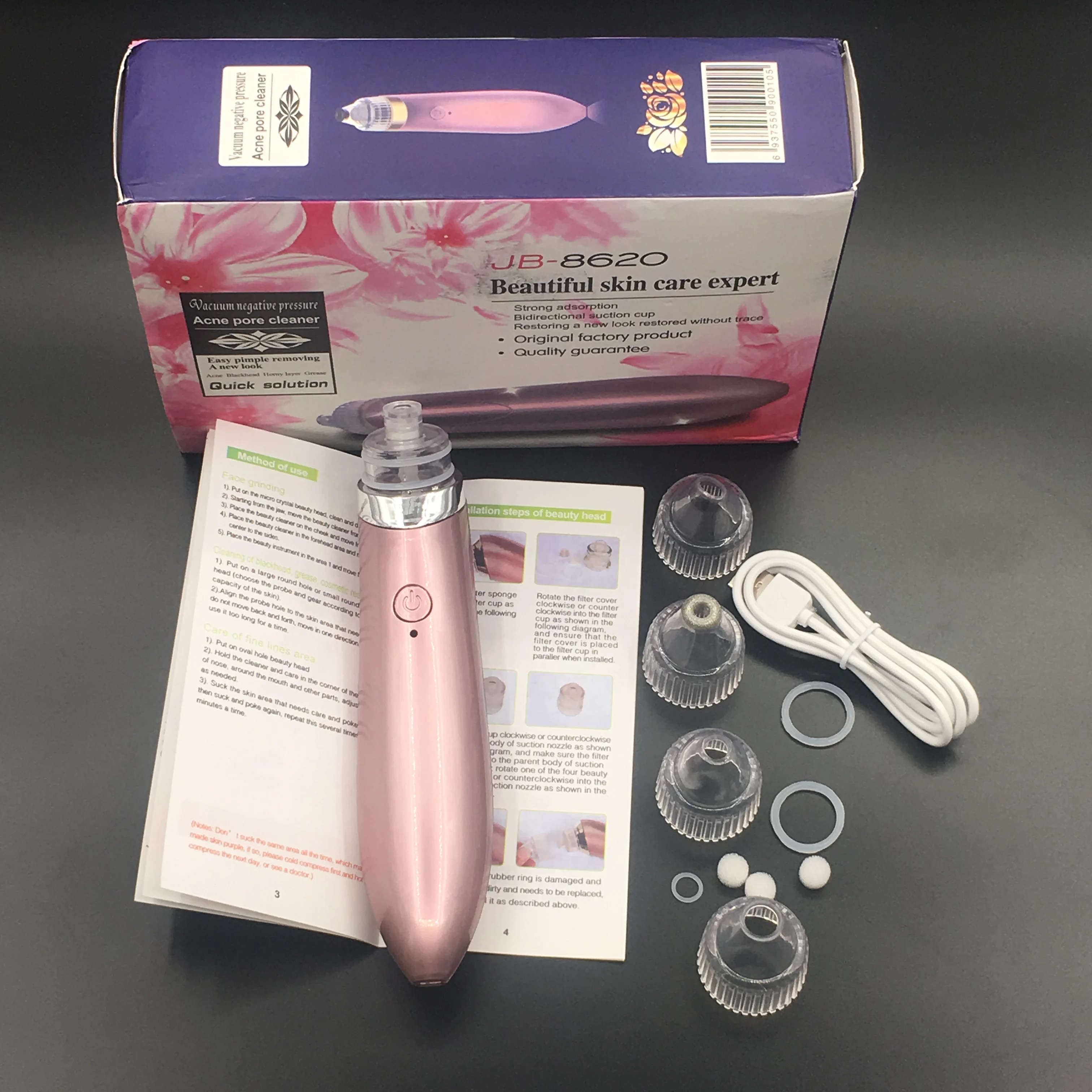 1.This portable microdermabrasion beauty machine comes with 4 interchangeable tips, with 4 different functions. It's the first beauty machine which integrates with skin peeling, face tightening, pore cleaning, blackhead and ance pulling up, wrinkle removal in the market.